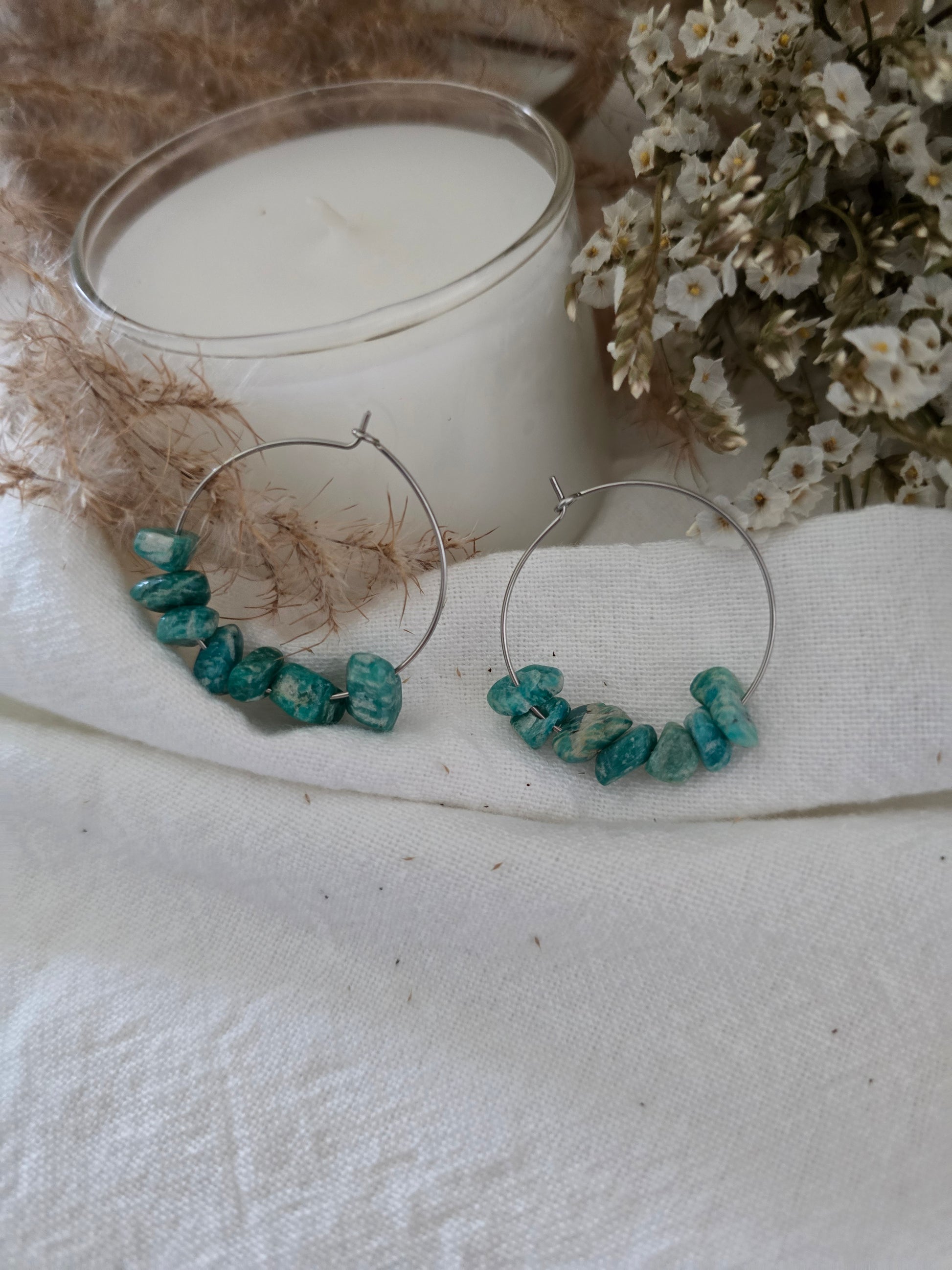 Boucles d'oreilles Créoles "Alya" Amazonite Baroque & acier inoxydable argenté