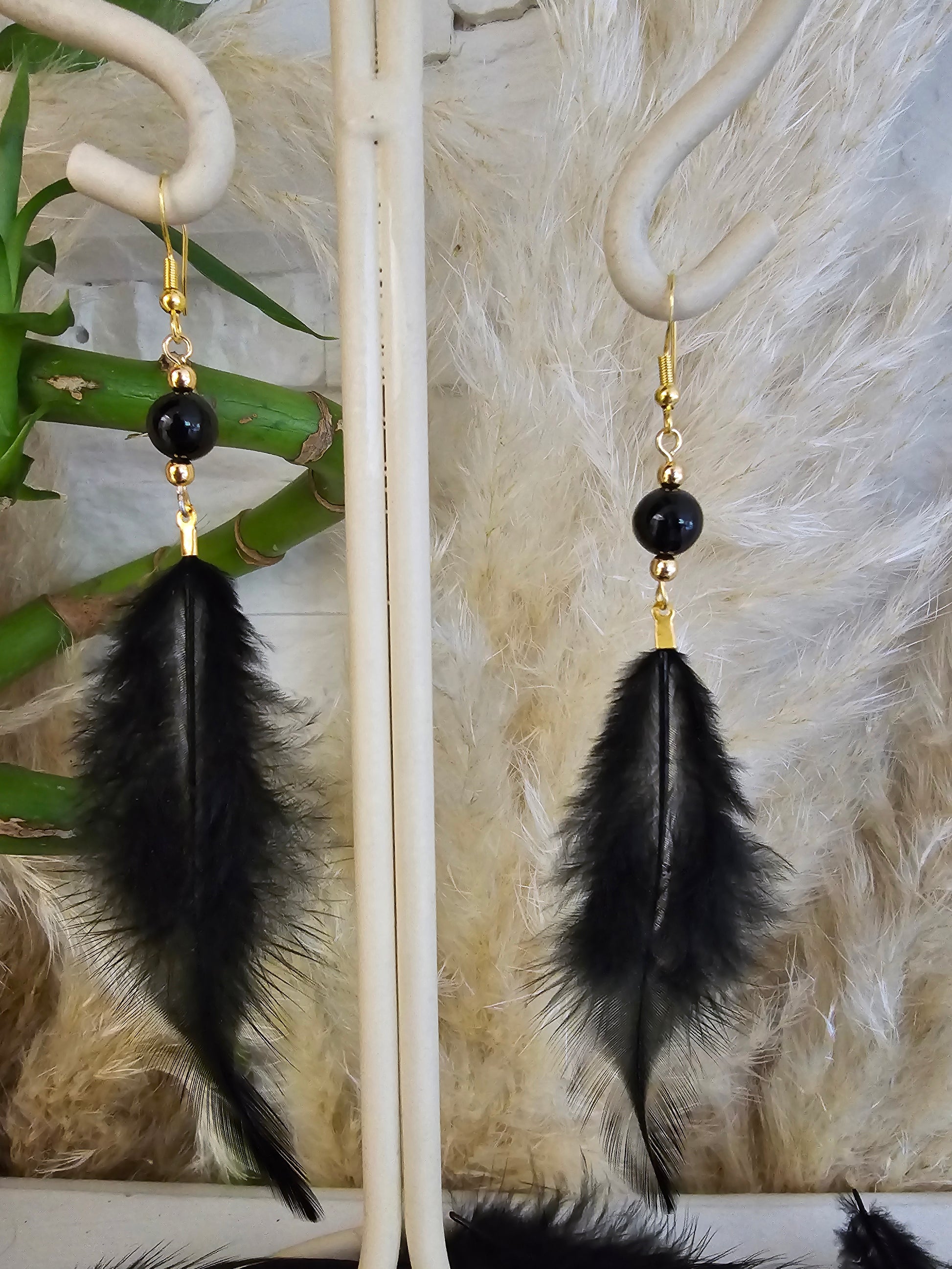 Découvrez les boucles d'oreilles dorées " Black Helen" ornées de plumes noires et de pierres naturelles d'obsidienne. Ces pièces raffinées transcendent le simple bijou et portent une signification profonde, offrant une multitude de bienfaits.
